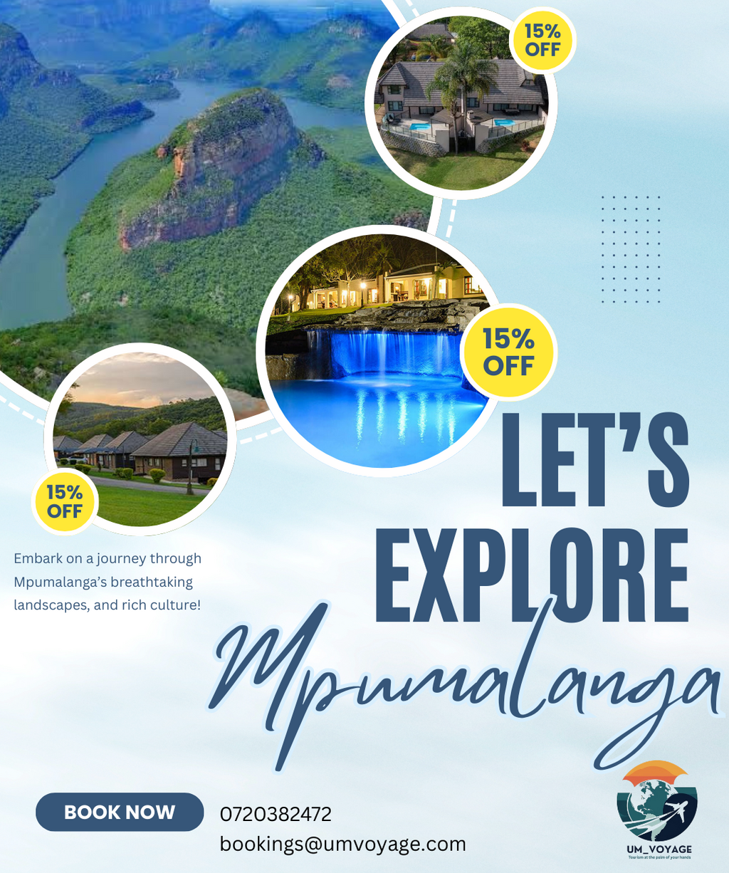 Explore stunning Mpumalanga with our tailored travel packages. Experience breathtaking landscapes, vibrant wildlife, and unforgettable adventures. Book now to create lasting memories in this beautiful destination! Your adventure awaits—embrace the journey today!